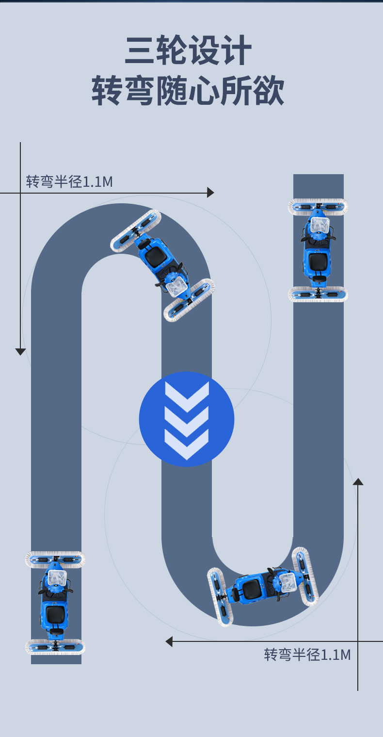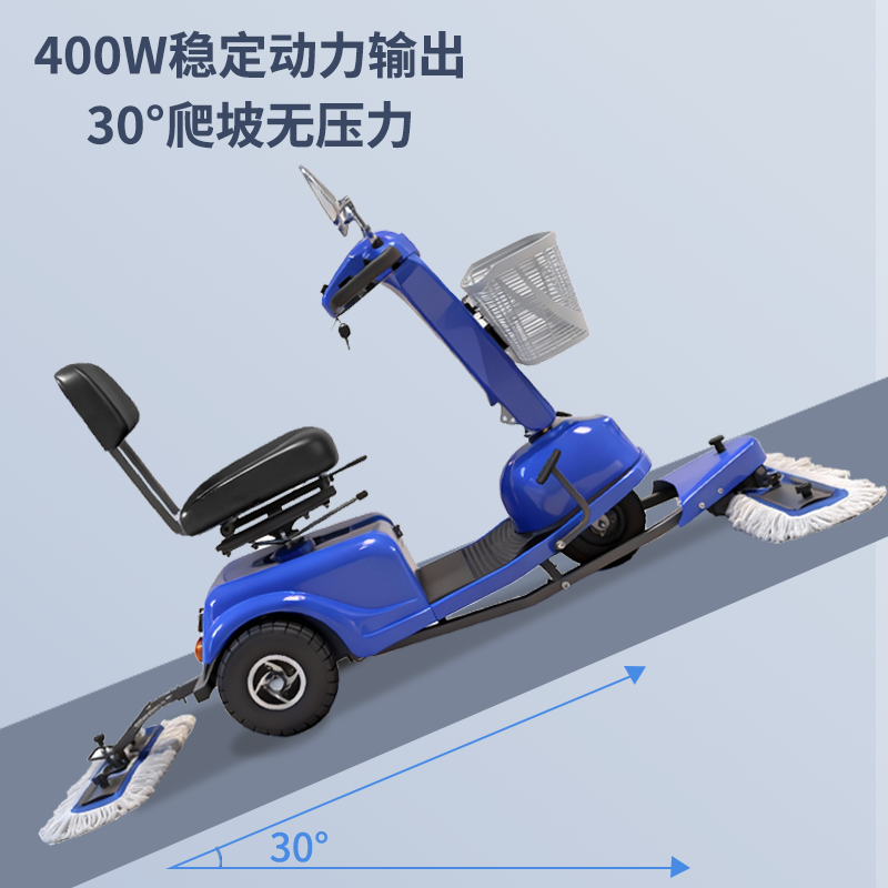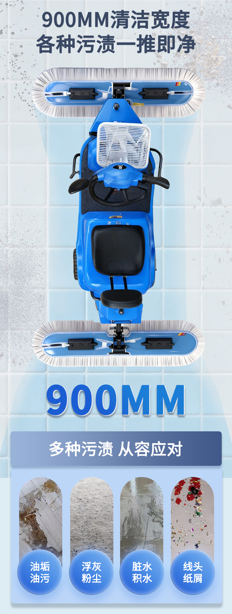 驾驶式尘推机是一种电动驱动的地面清洁设备,通过驾驶操作实现大面积地面推尘、拖地,主要用于商场、工厂车间、机场等场所。其核心优势为清