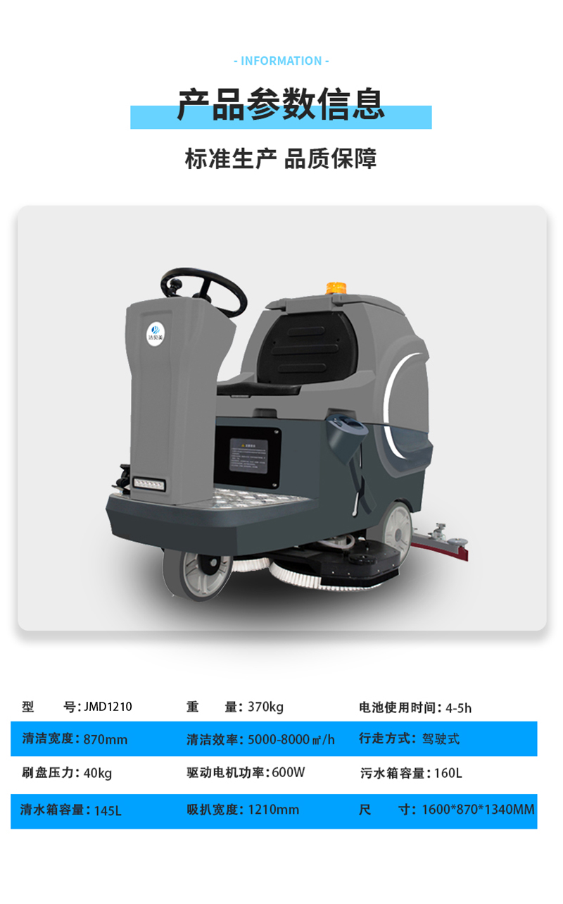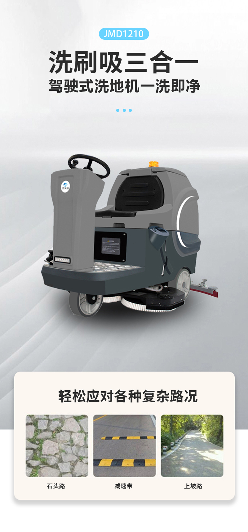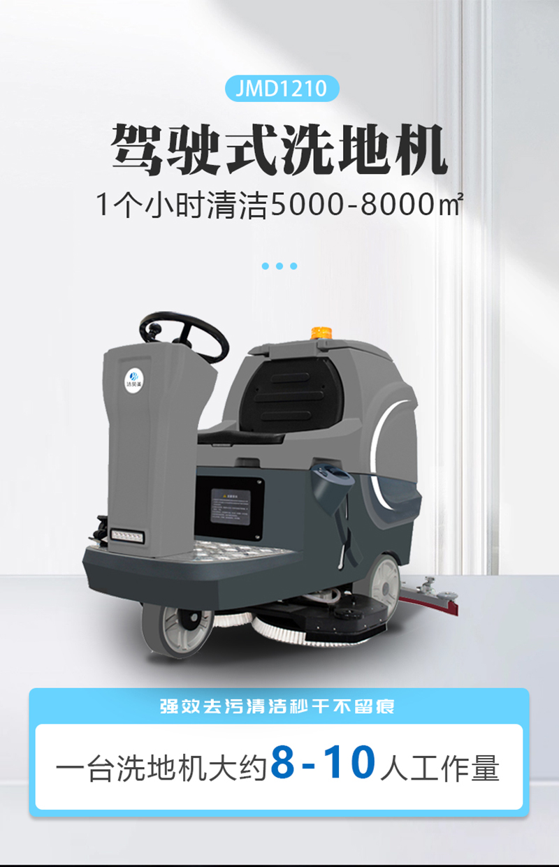 驾驶式洗地机怎么选择?1 清洁效率:优先选择每小时清洁面积≥2000㎡、续航≥4小时的机型,如鼎洁盛世DJ530M(2700㎡ h,续航5小时)。