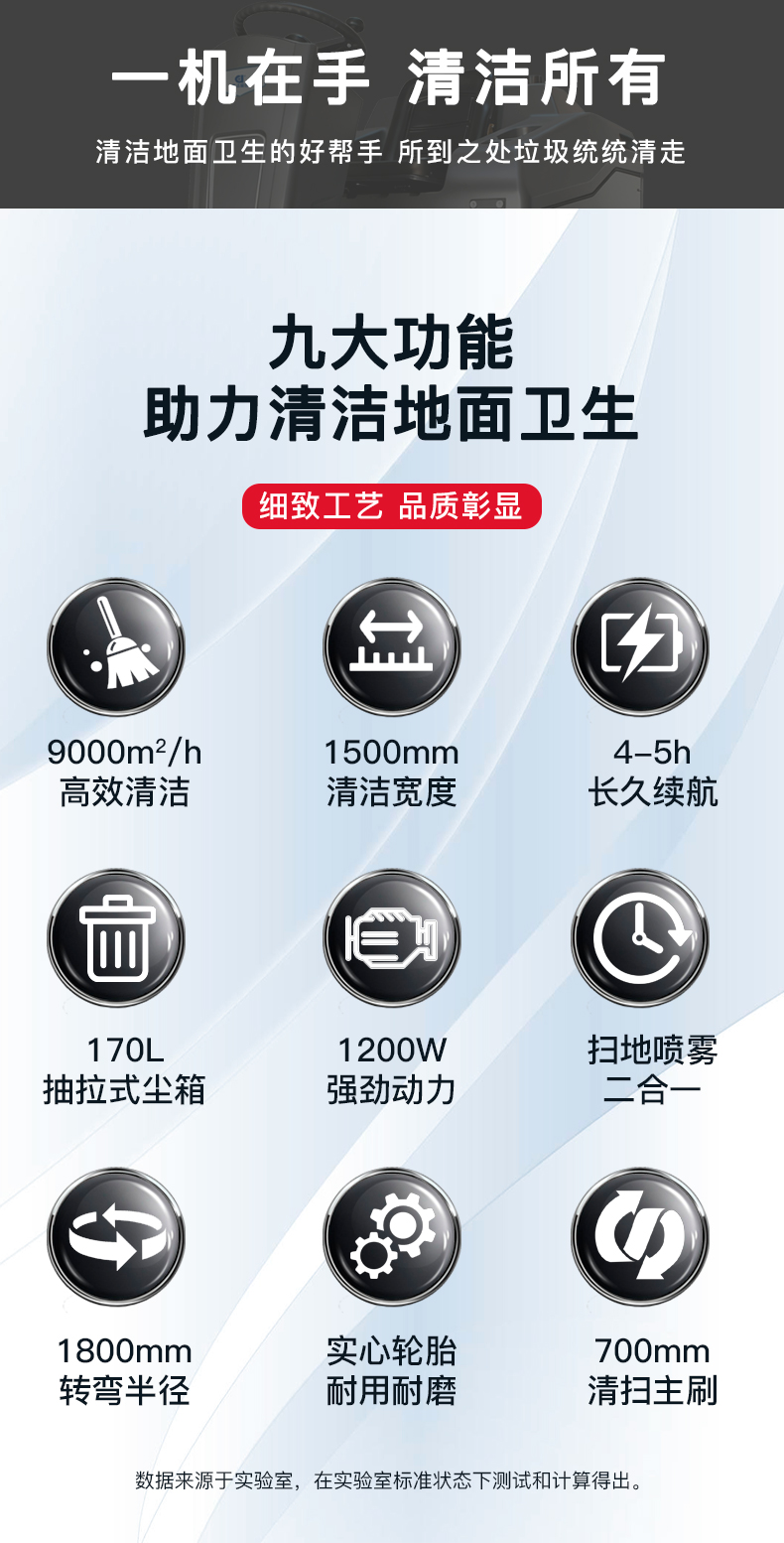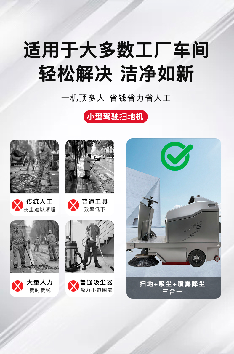 适用场所:适用于柏油路、水泥路、大理石、方砖、地砖等硬质地面,能高效的完成物业保洁、工厂车间、市政道路、医院社区、校园景区、广场公园、粉尘车间等公共场所地面的日常清洁工作