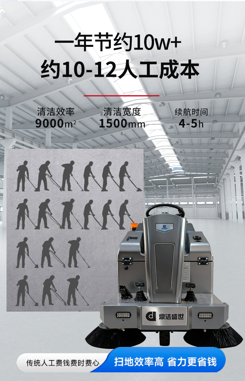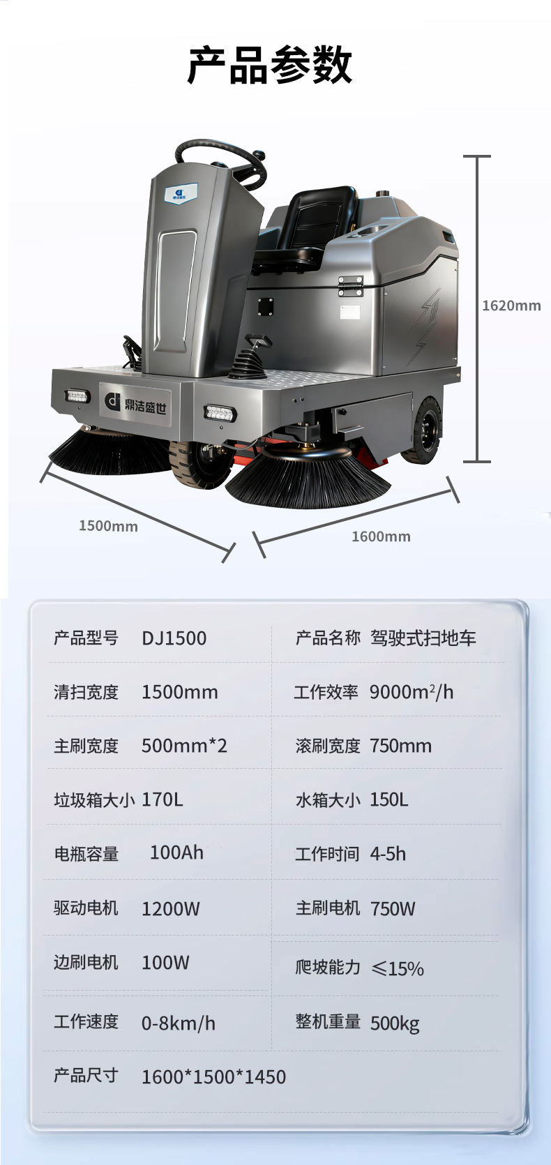 鼎洁盛世电动扫地车驾驶式扫地机DJ1500灰