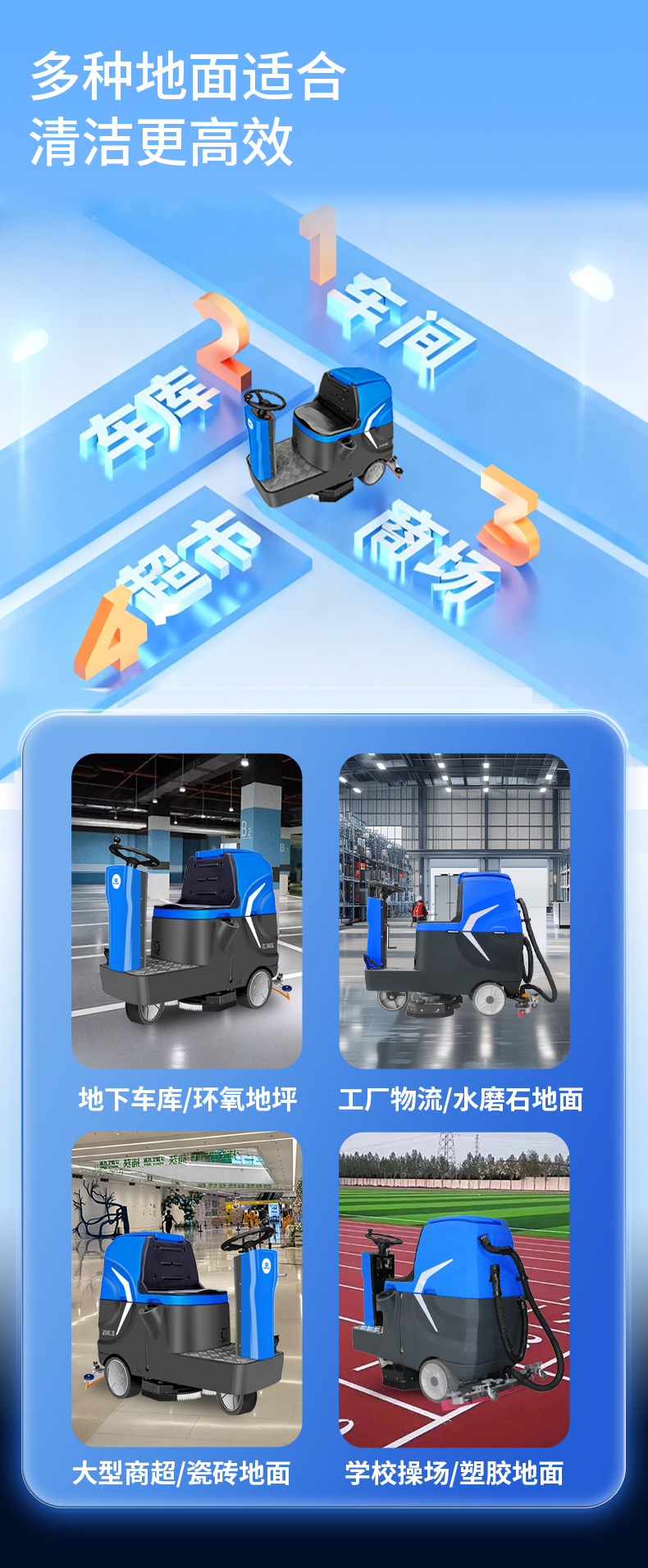 适用场所:地下车库、工厂车间、商场超市、加油站、学校酒店、火车汽车站,解决PVC、塑胶、水泥、环氧地坪、大理石瓷砖、小方砖、金刚砂等地面清洗.